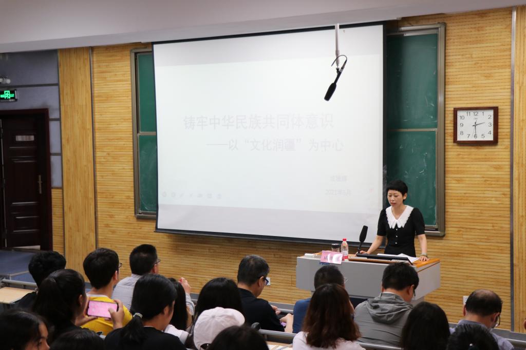 成珊娜老师作了题为“铸牢中华民族共同体意识——以‘文化润疆’为中心”的党史学习教育辅导报告。omofun