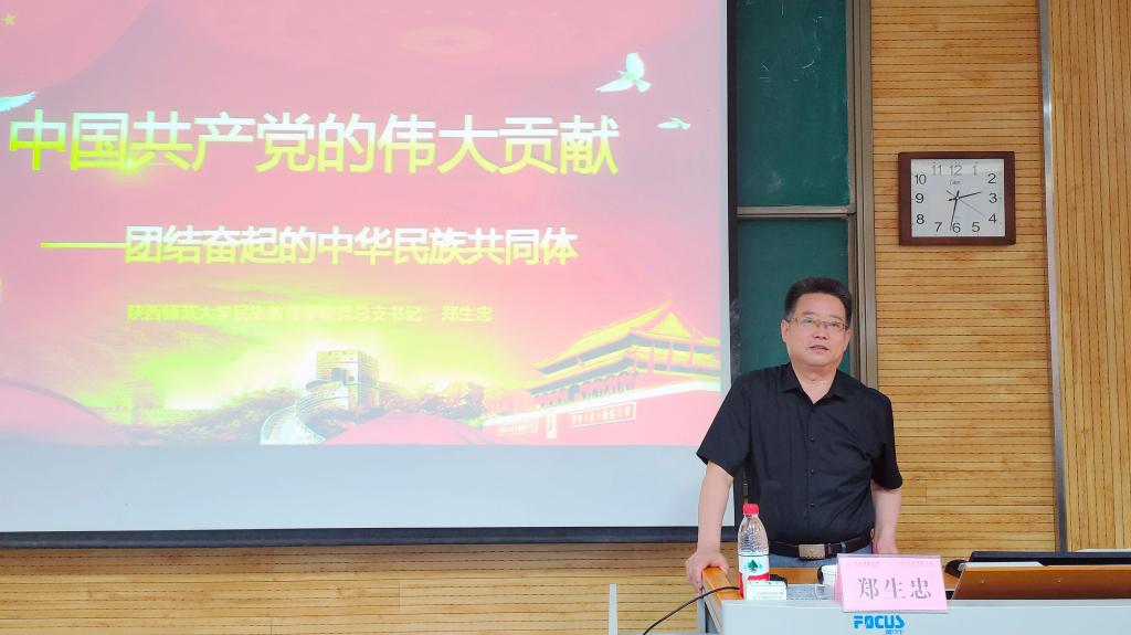 党总支书记郑生忠老师作了题为“中国共产党的伟大贡献——团结奋起的中华民族共同体”的党史学习教育辅导报告。omofun