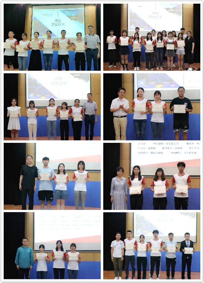 学习。在过去一年里,同学们在学习、工作和生活中都取得的长足的进步,深表欣慰。他指出,同学们要树立远大的人生理想,要志存高远、立足实际、提升素质、增长才干、凝炼本领,牢固树立正确的世界观、人生观、价值观,肩负起新时代赋予的重任。他希望,获奖的同学们要谦虚谨慎,戒骄戒躁。预科同学们即将进入新的环境继续学习,要不断严格要求自己,确定新目标、制定新计划、提出新要求、再创新辉煌。