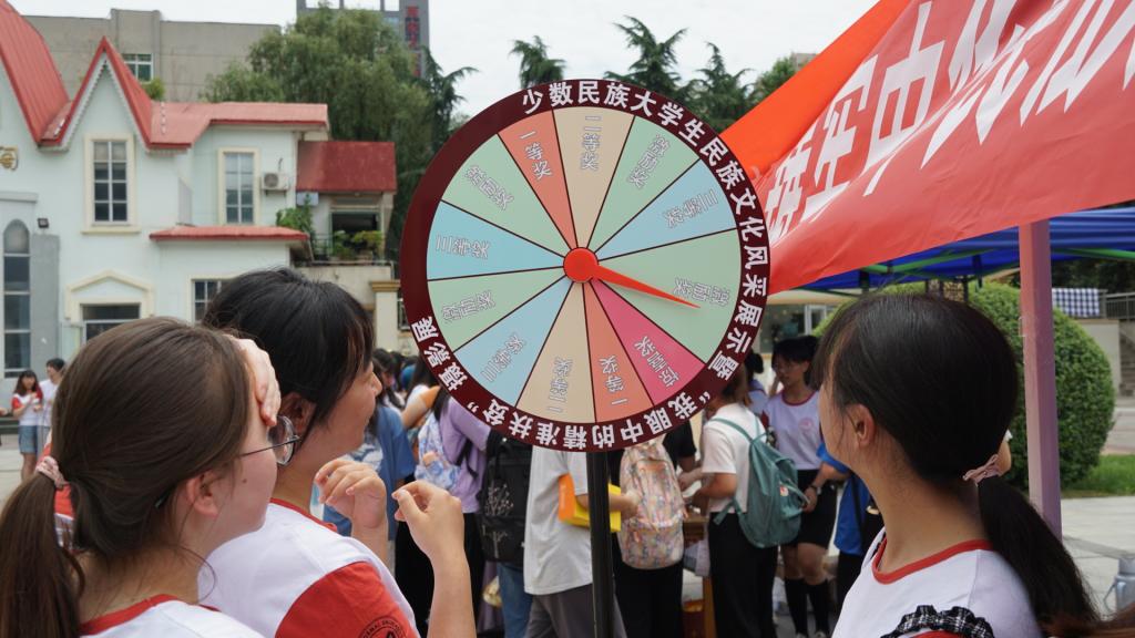 在民族文化风采展示环节中,师生共同观看和体验了民族文化长廊各民族文化风采展示和体验项目。参展的各民族同学身着本民族服饰,现场讲解了民族文化和特色,进行了各民族特色风味美食展示和品尝、民族服饰展示和表演等活动。抽奖区的各式小游戏,使同学们在学习了解民族文化的同时还获得了小奖品。在成果展示区,分别展示了优秀学生“家乡新变化”文学作品和“我眼中的精准扶贫”摄影作品等内容,这些内容是预科同学们用文字、镜头叙述和观察家乡“扶贫攻坚”的成就,运用手中的笔和相机,记录了对家乡发展变化、风土人情的新观察、新思考,通过纪念我国全面建成小康社会这一伟大成就,进一步增强了各民族学生的使命感和自豪感。