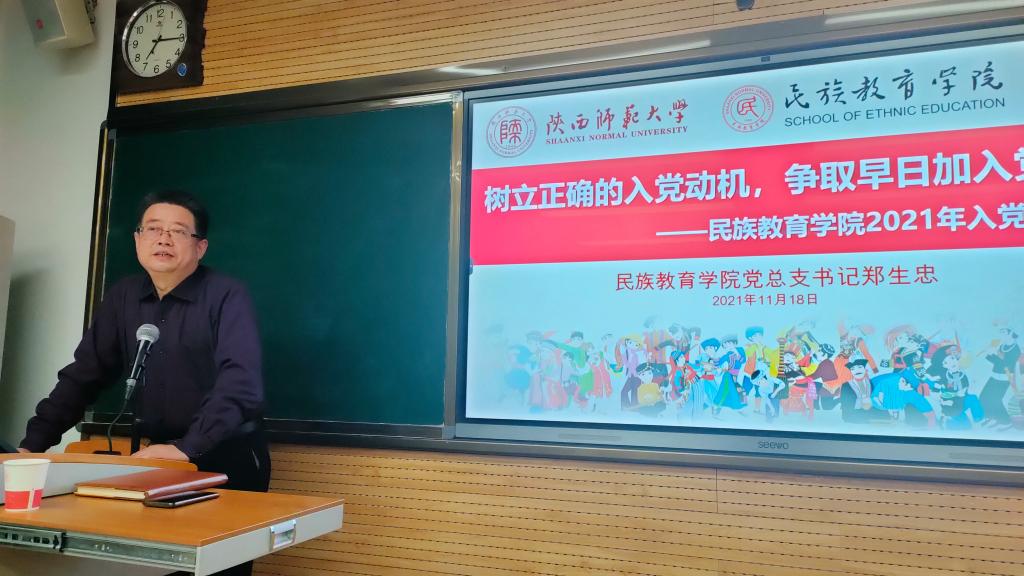 郑生忠以“树立正确的入党动机,争取早日加入党组织”为题,从正确认识中国共产党、正确认识世界和中国发展大势方面出发,讲述了中国共产党的百年奋斗史,介绍了中国共产党伟大的党组织,解释了中国共产党“为中国人民谋幸福,为中华民族谋复兴”的初心和使命,结合新冠疫情的严峻形势,阐释了“构建人类命运共同体”这一重大战略思想的内涵和重大意义。最后,郑生忠寄语全体同学,希望同学们能够做到三个“一定”:一是一定要紧紧拥护中国共产党,坚持中国共产党的领导;二是一定要主动去认识、热爱中国共产党;三是一定要严格要求自己,争取早日加入中国共产党。