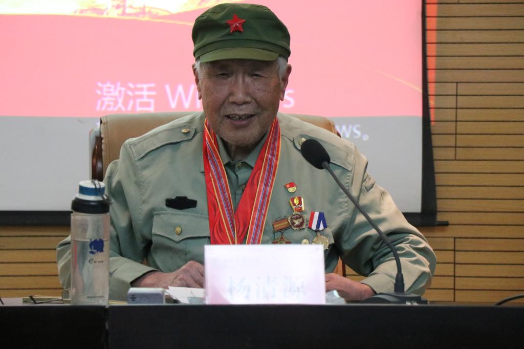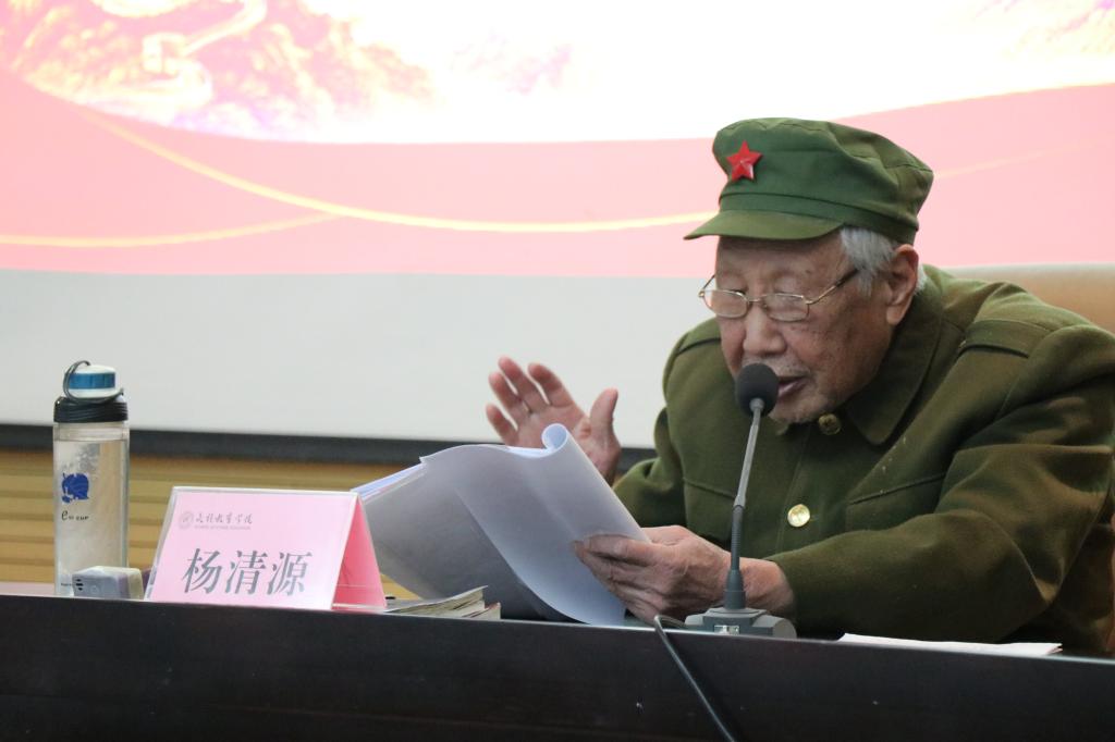 退休教授、抗美援朝老战士、我校首届“西部红烛两代师表奖”获奖者杨清源受邀为学院全体学生作“弘扬伟大长征精神,走好新时代长征路”主题报告。omofun