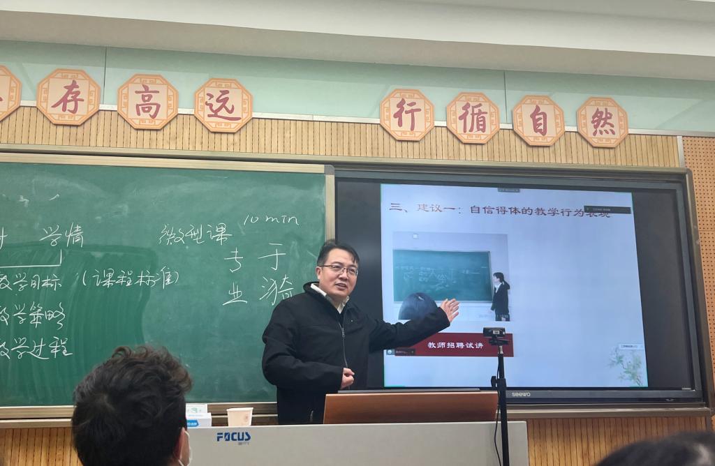 他提到:唯有“站上讲台”才可“一辈子做老师”,唯有“一辈子学做老师”,才能“站稳讲台”。随后,张教授重点从职业认知、心理素质、仪表仪态、言语表达、思维品质、教学设计、技能技巧、教学评价这八个方面剖析了面试的评分依据,通过典型案例具体讲授了应试的要求与策略,由微型课到正常课堂,让同学们对多种授课比赛有了更为全面的认识。