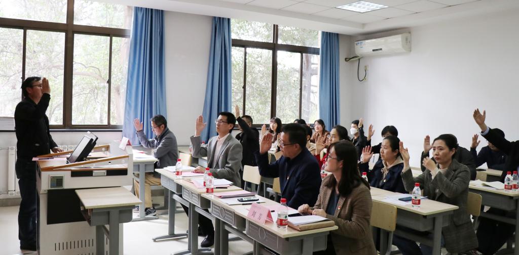总支部委员会换届选举党员大会。学校党委组织部副部长刘芳参加会议并对大会选举进行指导监督。学院领导班子、全体师生党员参加会议,大会由学院院长、党总支副书记龙宝新主持。