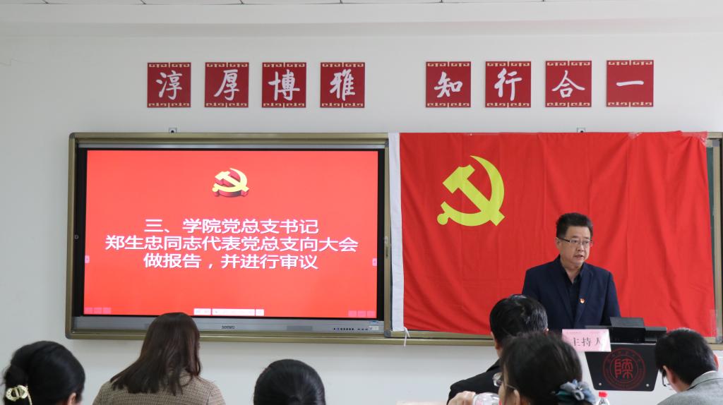 大会在庄严的国歌声中拉开序幕。学院党总支书记郑生忠代表上届党总支作了以《党建引领高质发展,培根铸魂立体育人——为建设全国一流少数民族人才培养基地而努力奋斗》为主题的工作报告,回顾总结了五年来本届学院党总支工作,分析存在的问题及当前发展面临形势和奋斗目标,提出学院党总支今后的发展思路和主要举措,明确今后的工作目标和任务。