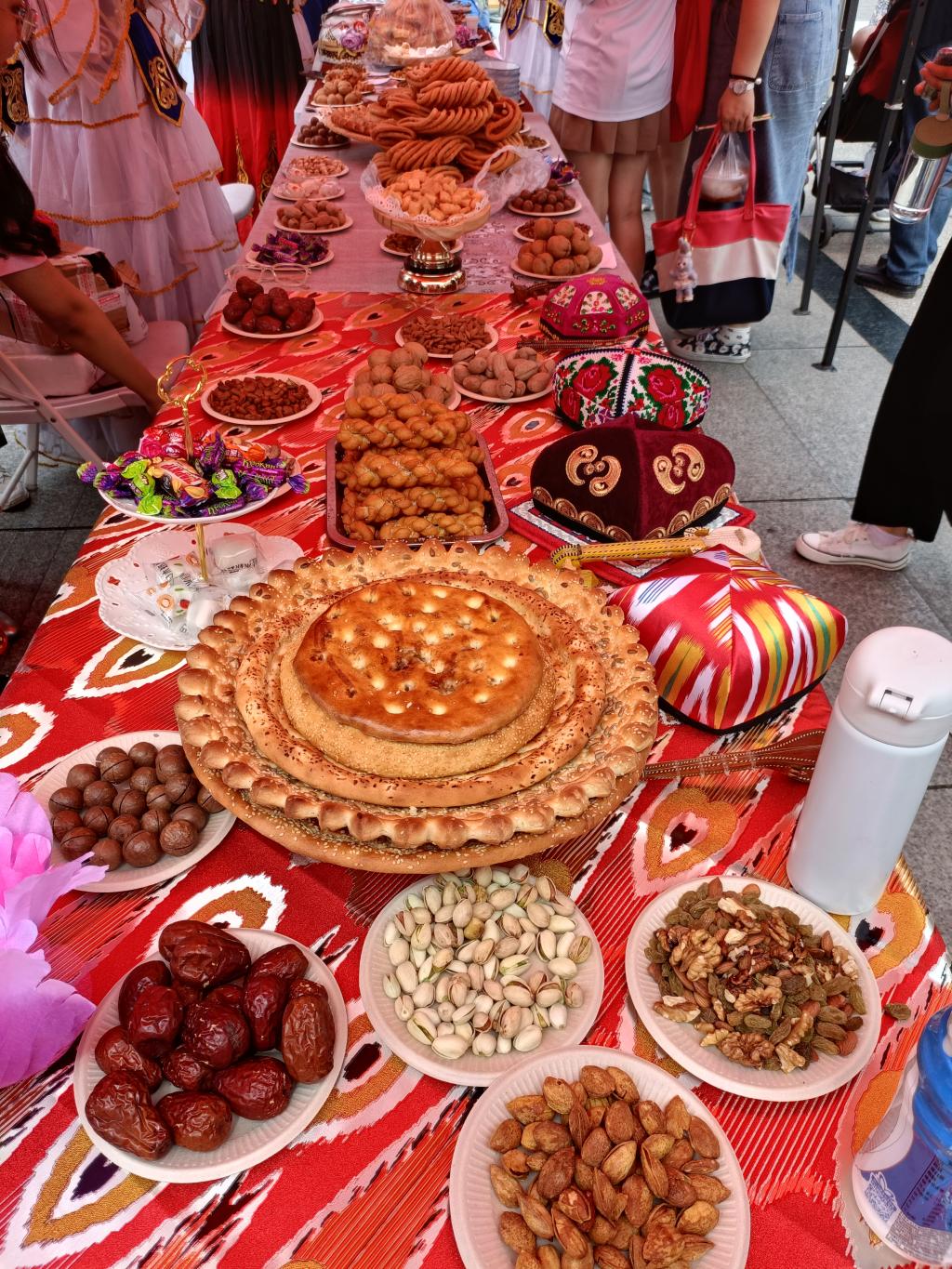 曼妙的音乐、热情的舞蹈。除此之外,活动现场还有新疆地区、内蒙古地区、甘宁地区、云贵川渝地区、陕西青海地区、湖南湖北广西地区共计六个活动区,分别展示各自地区民族的文化风俗,从民族服饰、文化器具再到民族美食,充分彰显了中华民族多元一体的特性,展示了百花齐放的绚烂场面。