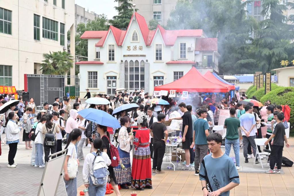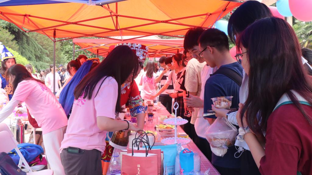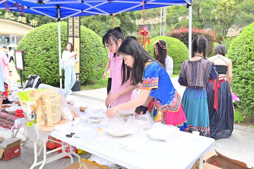 除了让人口齿留香的美食和应接不暇的表演,活动还设置了“民族传统体育项目体验区”,鼓励师生携手共同感受民族体育运动魅力,在投壶竞技、高脚和押加体验中实现各民族文化交流、情感融通。