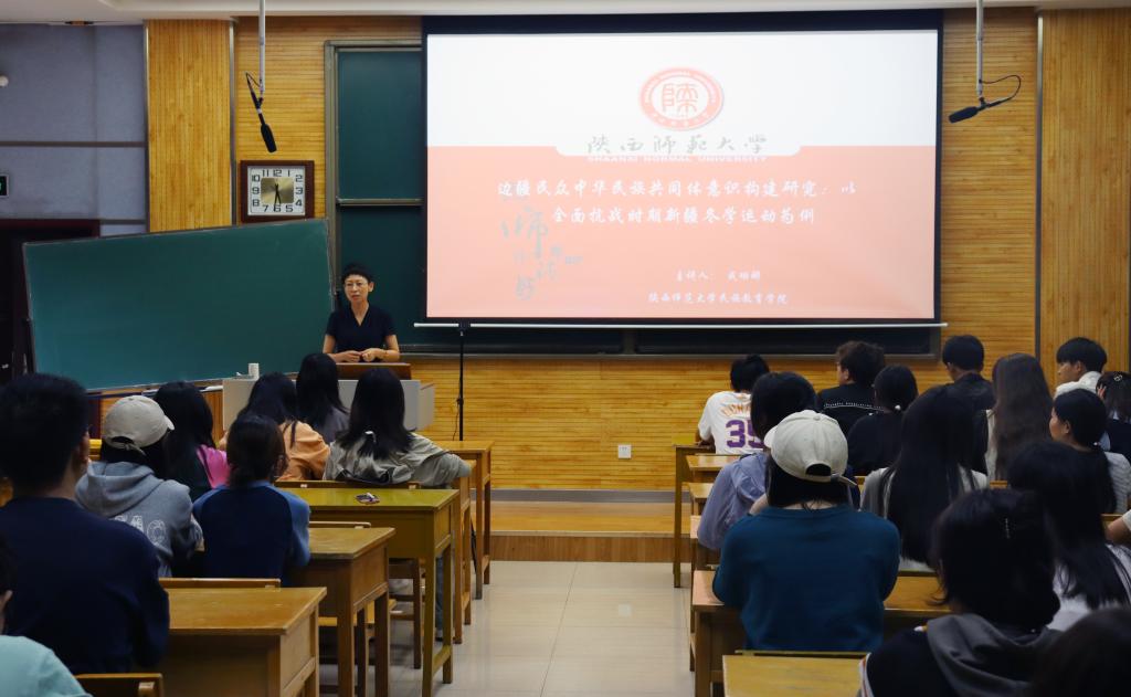 在雁塔校区教学五楼5304组织开展了“学习贯彻党的二十大精神,铸牢中华民族共同体意识”主题教育专题辅导报告第四讲。学院副教授成珊娜作题为“边疆民众中华民族共同体意识构建研究:以全面抗战时期新疆冬学运动为例”的专题辅导讲座。学院的全体预科生参加此次讲座,讲座由学院专职辅导员王霞主持。