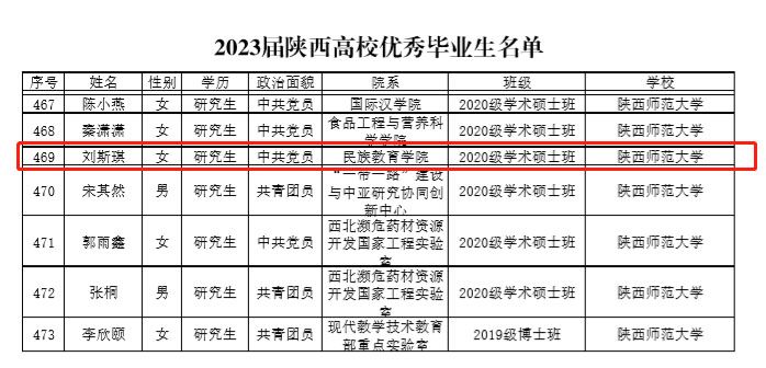 刘斯琪同学获得“陕西省高校优秀毕业生”荣誉。该奖项是继2022届硕士研究生王奕迪同学之后,又一次获得此殊荣,也是omofun