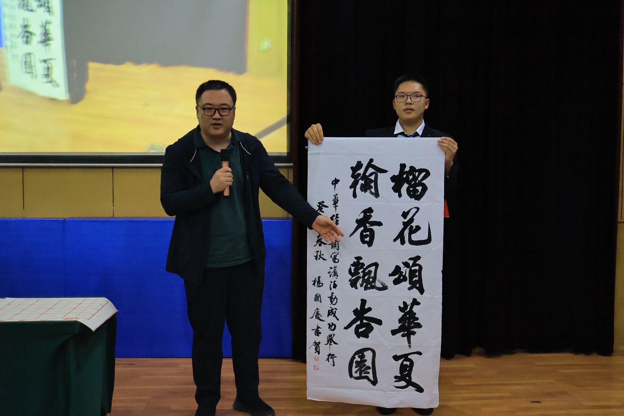 师生风采,也赛出了高水平,勉励之意满满;文学院杨国庆老师的现场挥毫题字,更是为师生们送上了一道书法魅力的文化大餐,也再一次将大赛的火热氛围推向高潮。此外,到场嘉宾还为“笔墨中国”汉字书写大赛获奖学生进行了颁奖。