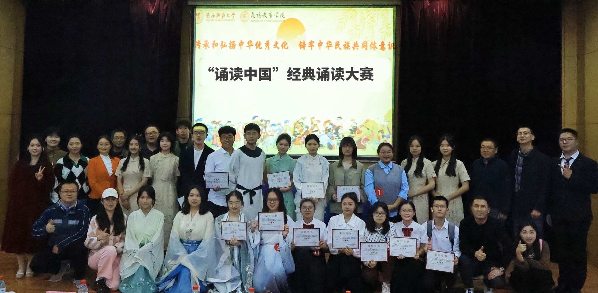近日在雁塔校区学术活动中心二层学术报告厅,举办了以“传承和弘扬中华优秀文化,铸牢中华民族共同体意识”为主题的2023年“诵读中国”经典诵读大赛。大赛由文学院副院长赵文、教师杨国庆、学院党总支书记郑生忠、院长龙宝新、党总支副书记高冬、教师刘丁、萨仁娜、乔露等老师担任评委,学院全体学生观摩学习。