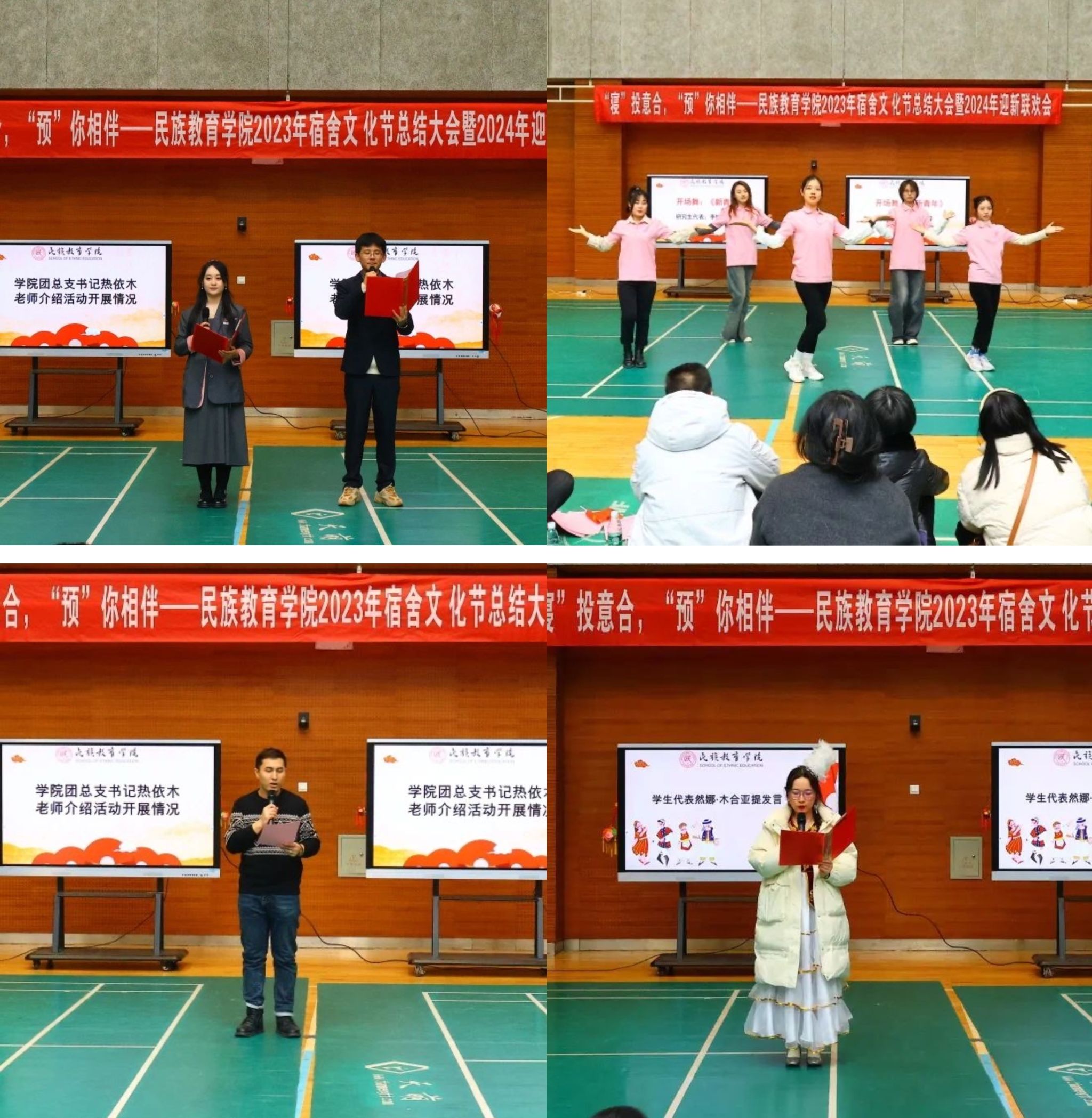 在雁塔校区体育馆隆重举办“寝”投意合,“预”你相伴2023年宿舍文化节总结大会暨2024年迎新联欢会。学院党总支书记郑生忠、党总支副书记高冬、团总支书记热依木、派驻教师祖丽菲亚,学院教职工戴妍、贾文红、欧阳婧、兼职辅导员李雪儿以及全院学生参加了本次大会,2023级预科生李佳铭、马羽菲主持。