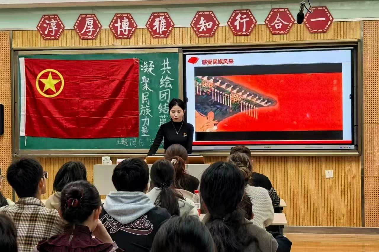 预科生团支部在雁塔校区八号教学楼8303教室举办了以“凝聚民族力量,共绘团结蓝图”为主题的联合主题团日活动,学院团委书记热依木·努尔麦麦提、兼职辅导员刘江珊以及各预科班团员代表参加了此次活动。