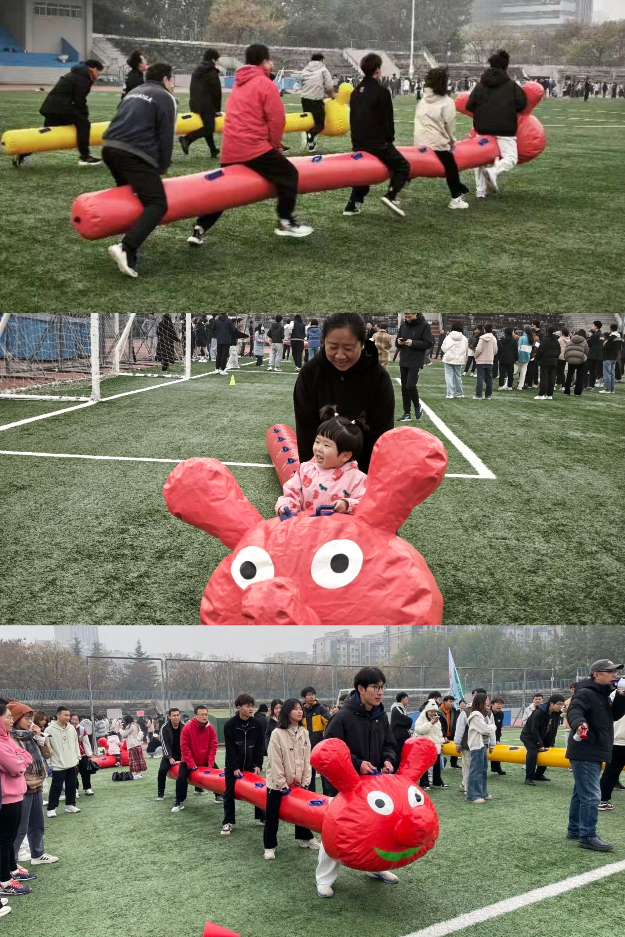 本次趣味运动会精心设计了六个项目:推铁环接力、背对背夹球接力、小绳单摇接力、击鼓颠球、合力筑塔、毛毛虫竞速。每个项目均要求师生共同配合完成,既考验个人技能,又强调团队协作。
