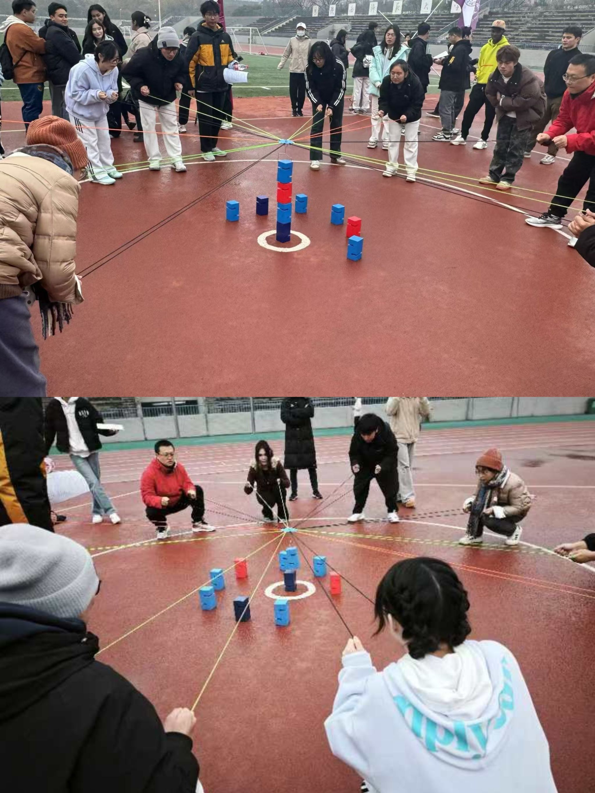 在比赛中,学院师生不仅展现了他们的青春风采,更彰显了团队的凝聚力。他们在推铁环接力、背夹球接力、小绳单摇接力中默契配合,有条不紊;在击鼓颠球、合力筑塔、毛毛虫竞速中齐心协力,迎难而上,充分体现了学院师生团结一心、共同奋斗的美好品质。