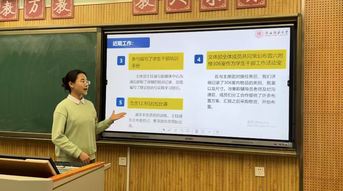 文艺体育部负责人 王钰涵作部门工作汇报
