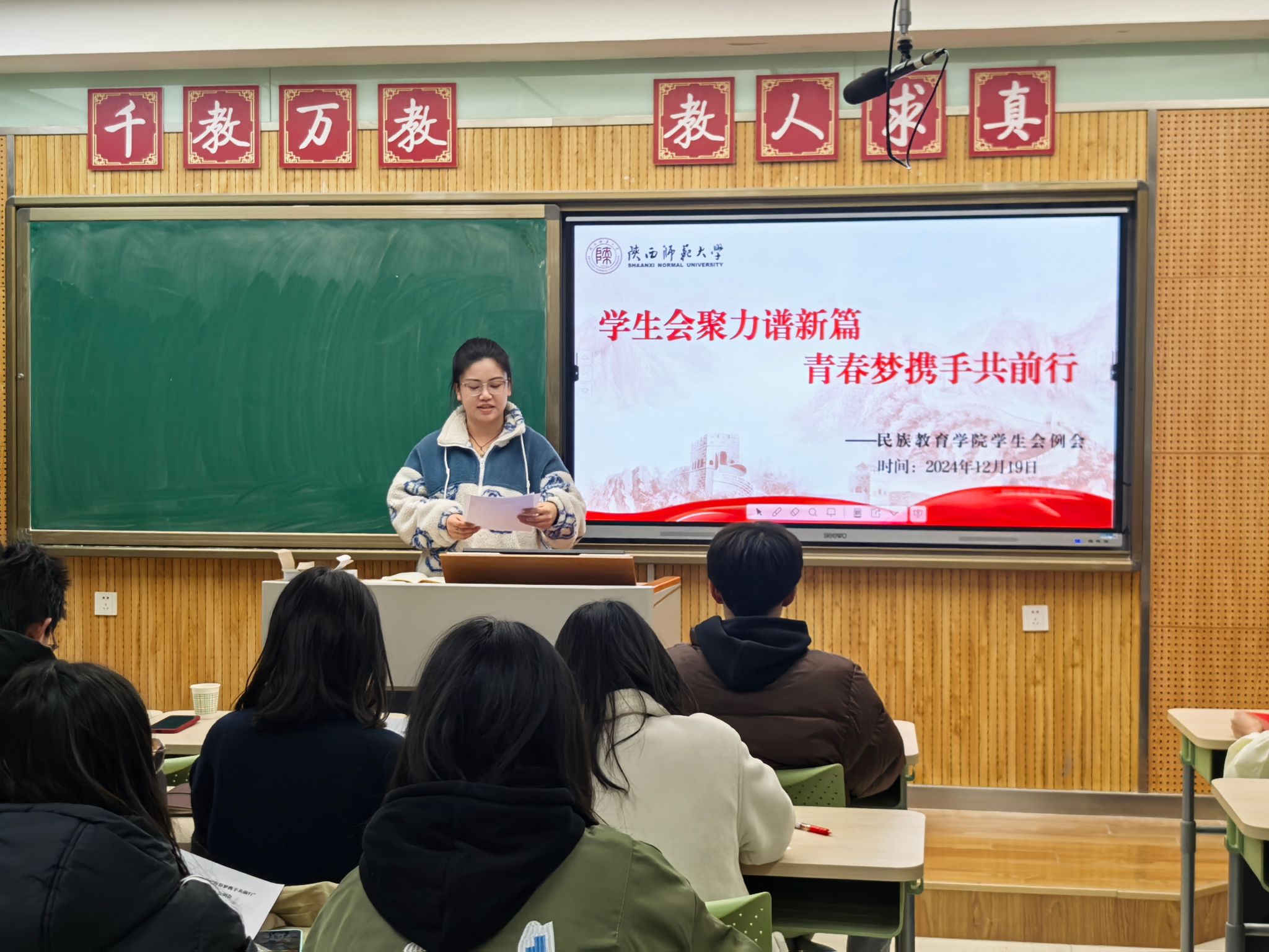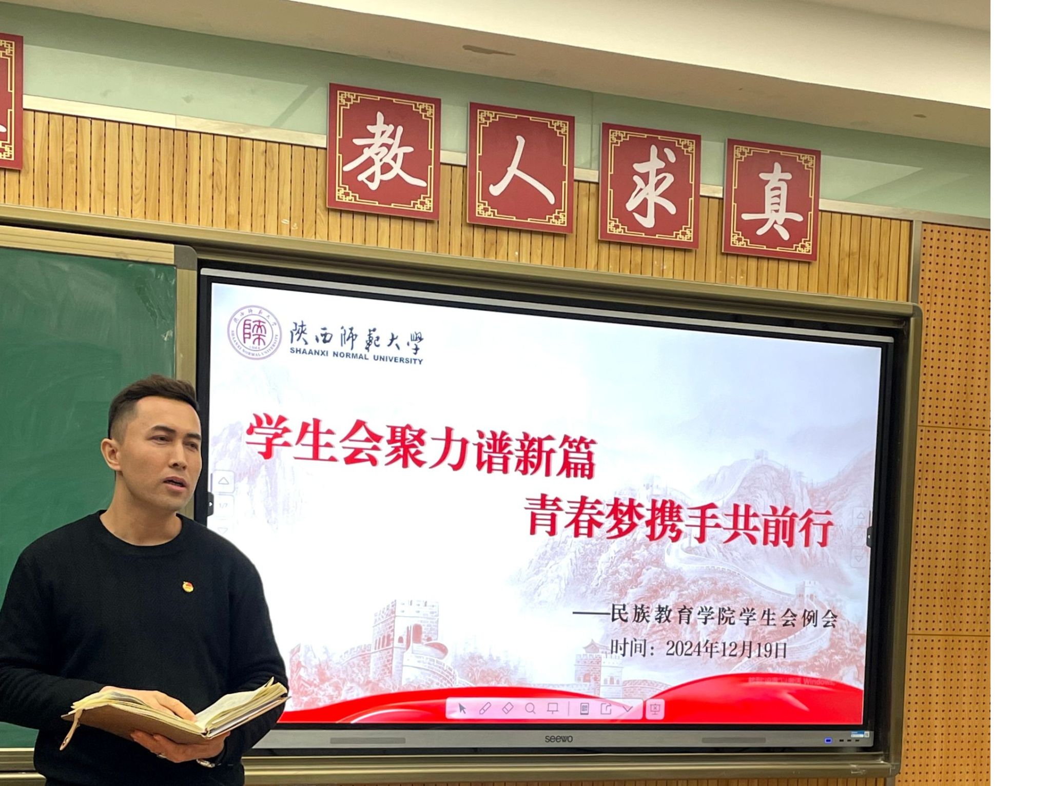团委在雁塔校区八号教学楼8202室召开了12月份学生工作例会。学院团委书记热依木·努尔麦麦提,团委学生兼职副书记、兼职辅导员刘江珊以及学生组织全体工作人员参加会议,会议由新媒体中心负责人夏梓灵主持。