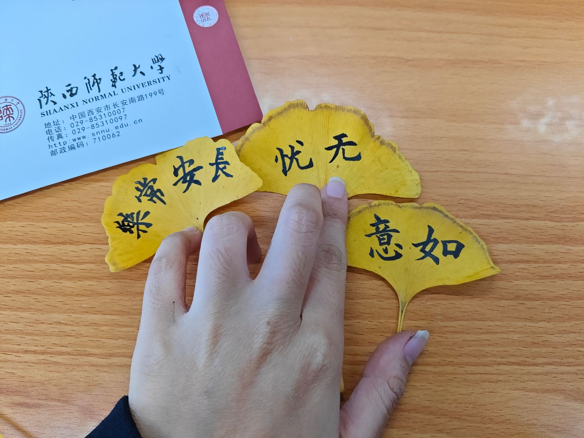 在学校银杏叶书写暨银杏叶书签设计比赛中,学院预科1班李彤彤以作品《长安常乐》荣获二等奖。