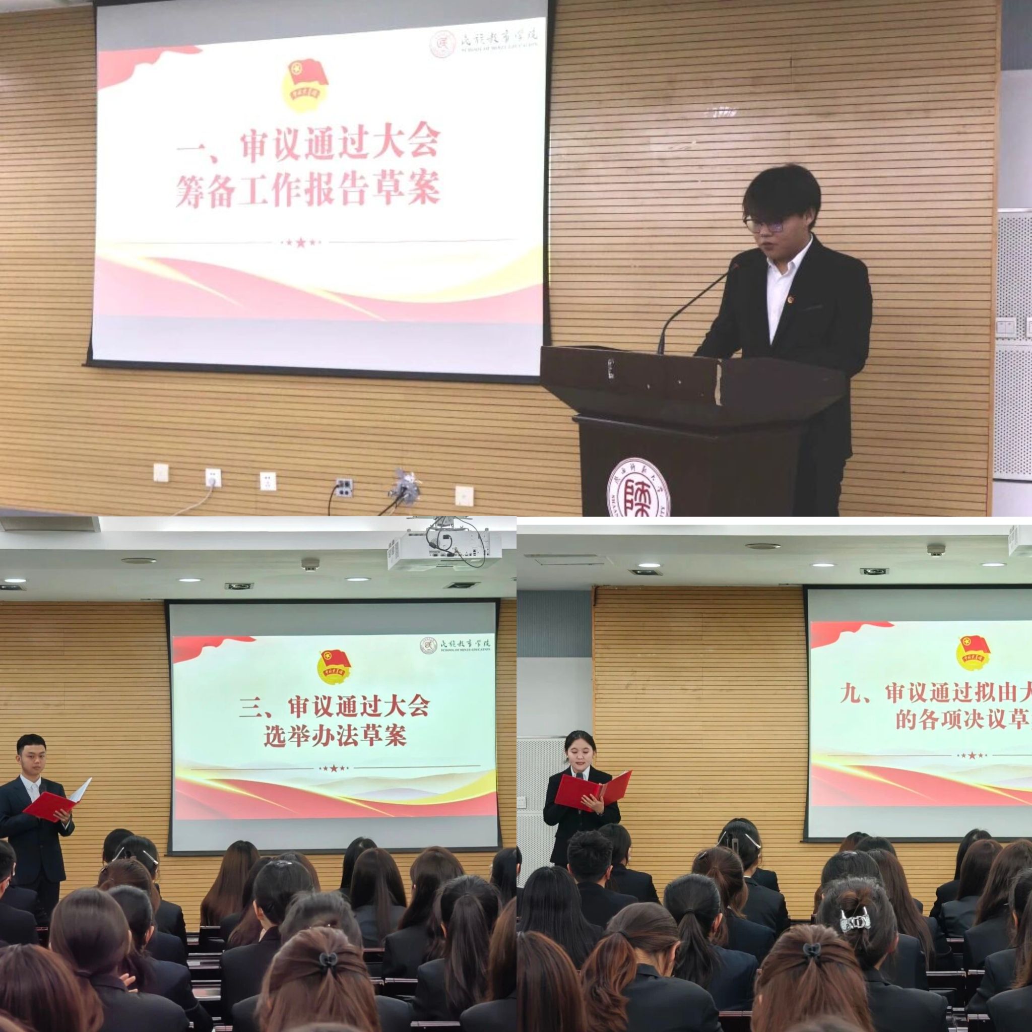 会上,与会同学审议通过了《关于通过学生委员会工作报告的决议》《正式大会选举办法》《关于提案工作报告的决议》。选举产生了第六届学生委员会委员。