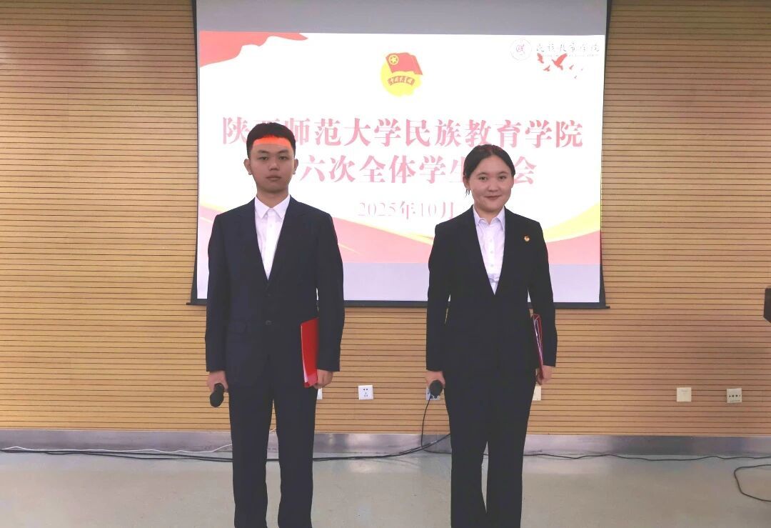 第六次全体学生大会在雁塔校区崇鋈楼学思堂顺利召开。学院党总支书记闫文浩,院长、党总支副书记龙宝新,党总支副书记高冬,专职辅导员米尔微提·赛尔克汗,学生兼职团委副书记、兼职辅导员刘江珊及全体学生参加了此次大会。会议由2025级预科生阿依娜拉·渥木尔江、候浩然主持。